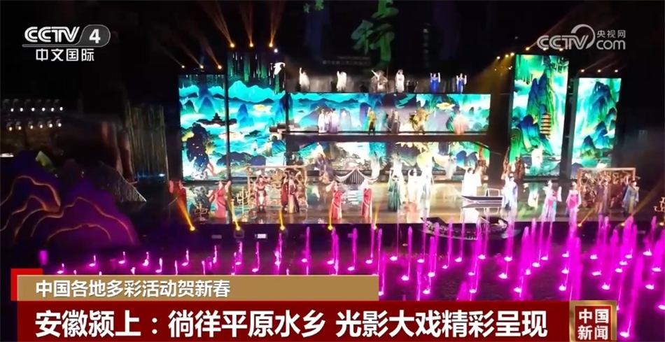 在管仲故里安徽潁上縣,八里河景區(qū)裝扮一新,新增的夜游項目結合當地水資源優(yōu)勢和文化元素,為游客打造流光溢彩的光影大戲。