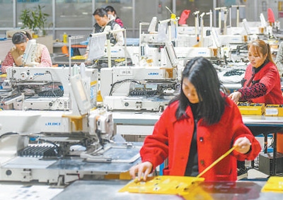 正月初六,湖南永州市道縣高新技術(shù)產(chǎn)業(yè)園區(qū)內(nèi),工人在流水線上工作。蔣克青攝(新華社發(fā))