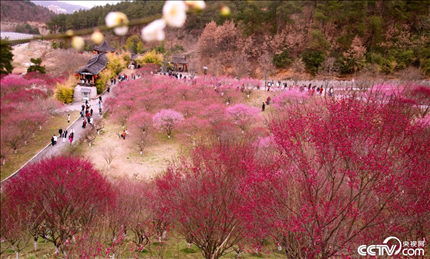湖北十堰秦巴植物園里萬畝梅花盛開,漫山遍野如云似霞。