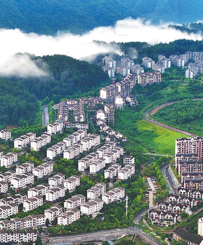 重慶市萬(wàn)盛經(jīng)開(kāi)區(qū)北門村移民新村,一棟棟錯(cuò)落有致的民居與高山相映成景。讓搬遷群眾“搬得出、穩(wěn)得住、能致富”,各地因地制宜發(fā)展特色產(chǎn)業(yè),助力農(nóng)民持續(xù)增收。曹永龍攝(人民視覺(jué))