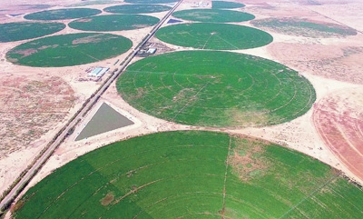 內(nèi)蒙古自治區(qū)加快推進(jìn)國(guó)土綠化,“三北”工程攻堅(jiān)戰(zhàn)和三大標(biāo)志性戰(zhàn)役進(jìn)展順利。截至2023年底,累計(jì)完成造林556萬(wàn)畝、種草1743萬(wàn)畝、防沙治沙950萬(wàn)畝。圖為烏蘭布和沙漠苜蓿種植基地。新華社記者 李云平攝
