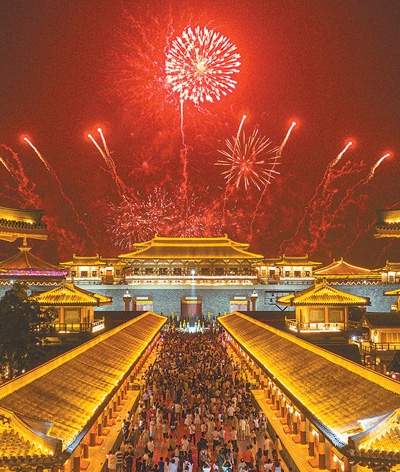 游客們?cè)诤笔∠尻?yáng)市唐城景區(qū)看煙花秀。當(dāng)?shù)嘏e辦的戲曲文化藝術(shù)節(jié)吸引了眾多省內(nèi)外游客前來(lái),拉動(dòng)當(dāng)?shù)芈糜谓?jīng)濟(jì)。據(jù)統(tǒng)計(jì),2023年國(guó)內(nèi)出游人次達(dá)48.91億,國(guó)內(nèi)游客出游總花費(fèi)4.91萬(wàn)億元。楊 東攝(影像中國(guó))