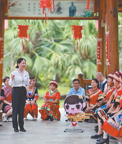 廣西壯族自治區(qū)桂林市恭城瑤族自治縣,黨員在“桂姐姐”課堂上進(jìn)行宣講。近年來(lái),當(dāng)?shù)匾劳行聲r(shí)代文明實(shí)踐中心,組織“桂姐姐”宣講隊(duì),傳播黨建、法律和婦女兒童權(quán)益保障等知識(shí)。各地新時(shí)代文明實(shí)踐中心成為精神文明建設(shè)的重要陣地,在加強(qiáng)思想政治引領(lǐng)、培育社會(huì)文明風(fēng)尚等方面發(fā)揮著重要作用。劉教清攝(人民視覺(jué))