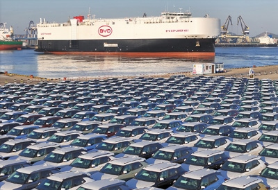 中國(guó)首艘由國(guó)內(nèi)船企建造、專門用于國(guó)產(chǎn)新能源汽車出口的汽車運(yùn)輸船“比亞迪開(kāi)拓者1號(hào)”搭載新能源汽車從山東煙臺(tái)港啟航。2023年,中國(guó)新能源汽車產(chǎn)銷量均突破900萬(wàn)輛,其中出口120.3萬(wàn)輛,同比增長(zhǎng)77.6%,成為經(jīng)濟(jì)高質(zhì)量發(fā)展中的一抹亮色。唐 克攝(影像中國(guó))
