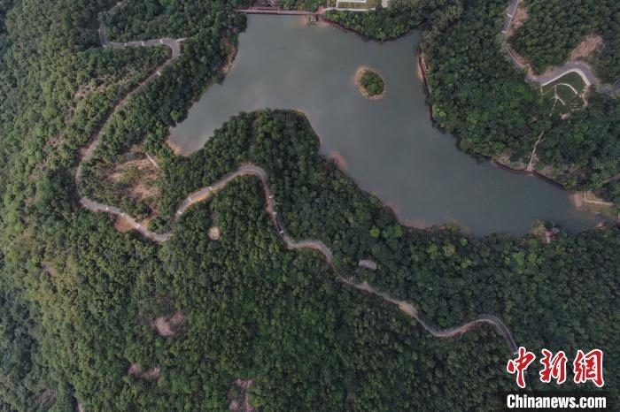 航拍鏡頭下的廣州市白江湖森林公園。陳楚紅 攝