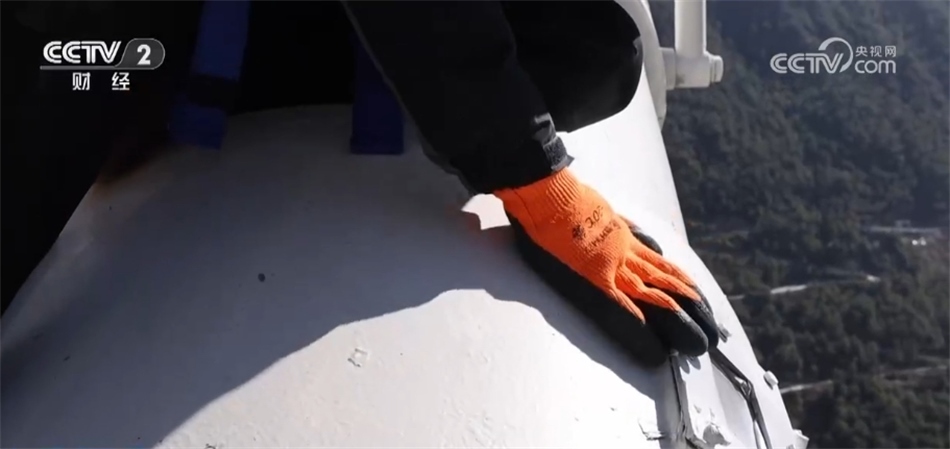 106個索夾、2000多顆螺栓,楊應(yīng)文帶著工友一處一處仔細(xì)檢查,在檢查梯上每移動兩米就要重新扣一次安全繩。