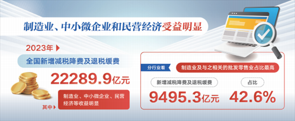 超2.2萬億元——這是2023年全國新增減稅降費及退稅緩費的總規(guī)模,其中超七成“落”于民營經(jīng)濟,稅費紅利精準(zhǔn)“落袋”,助企減負(fù)增活力。