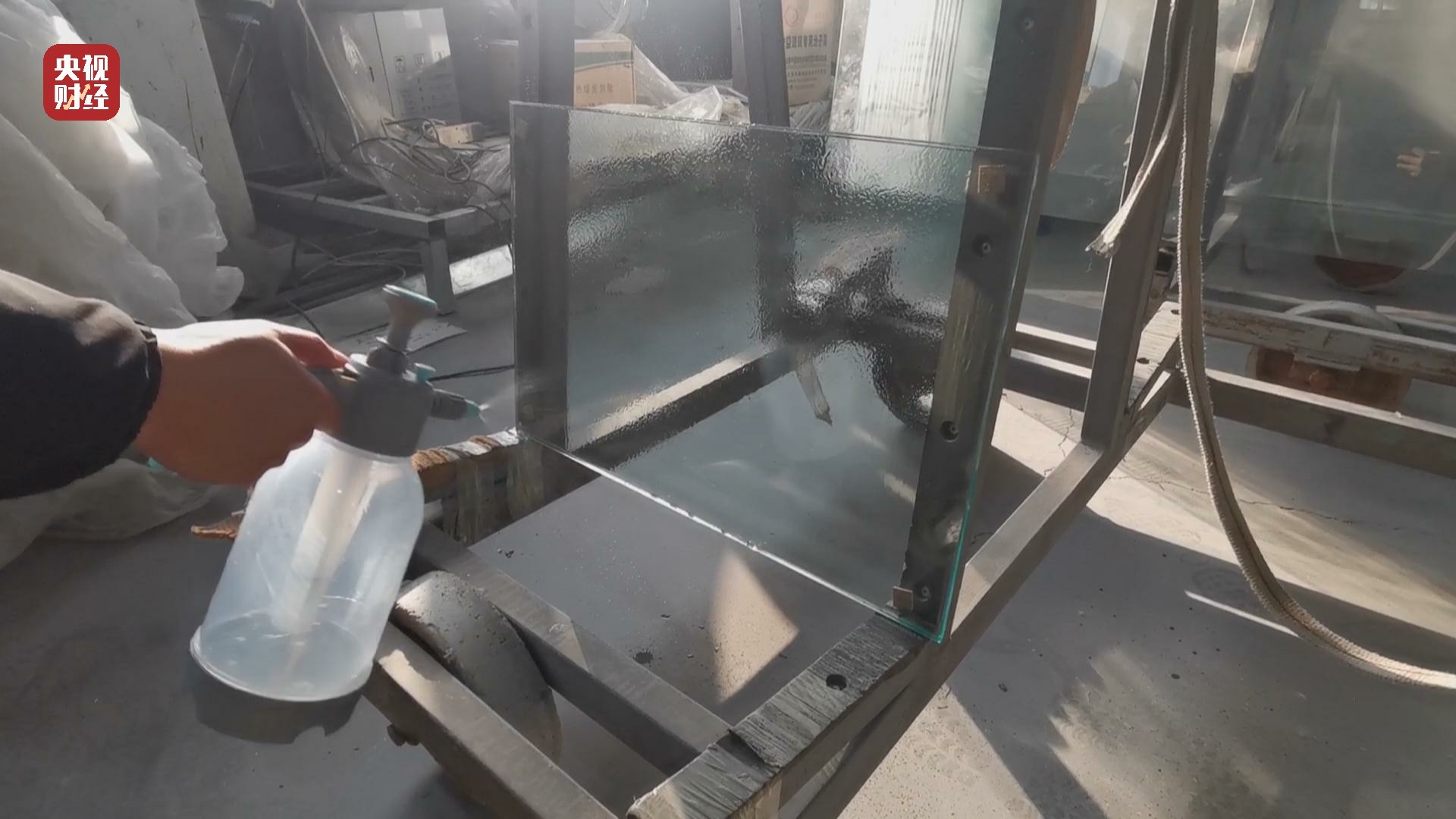 天津順玻玻璃科技有限公司工人:“防火液把它噴成霧狀的,噴一層,不要讓它多到滴下來,就是霧狀的。”?
