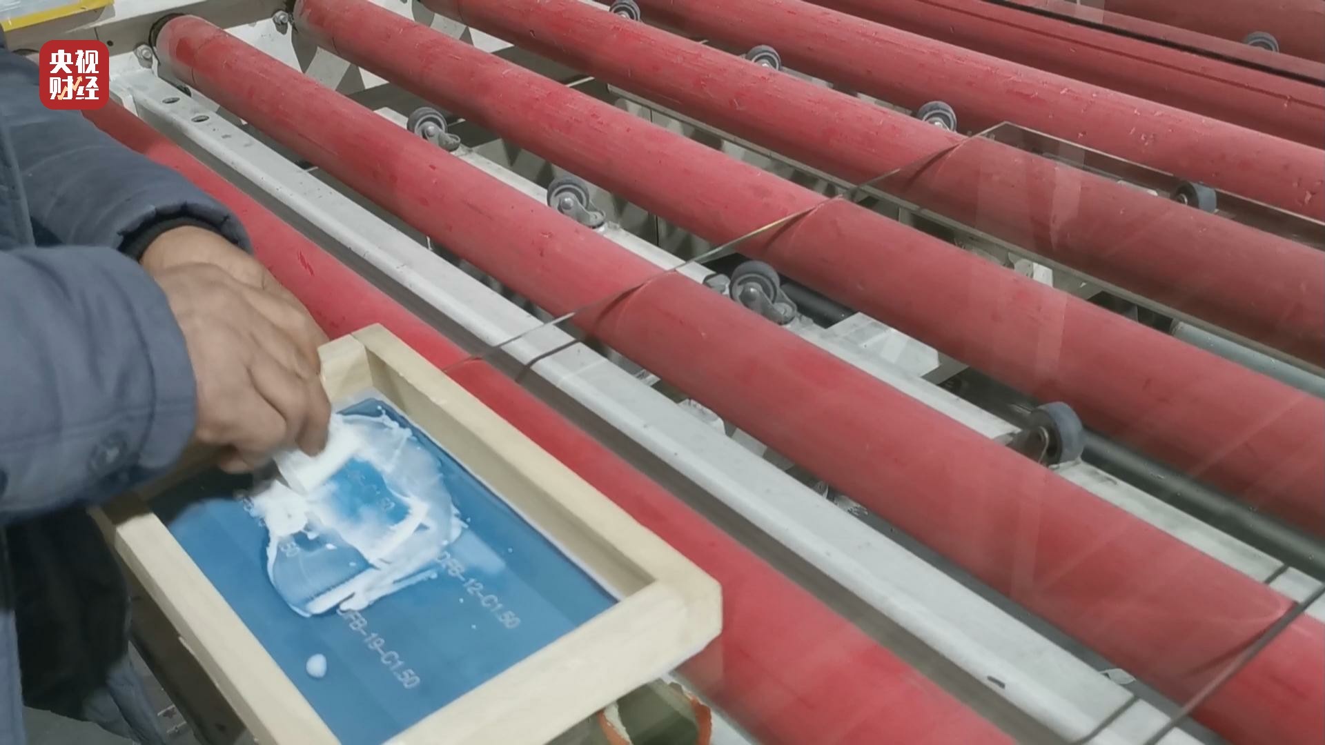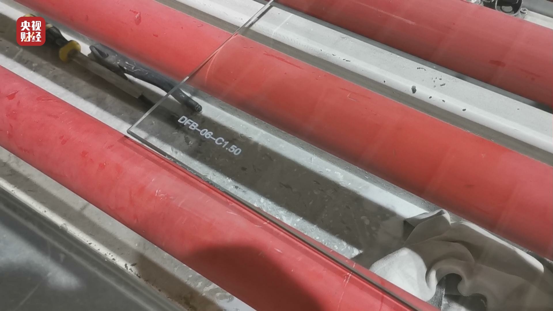 但是記者看到,同時(shí)跟樣品玻璃一起鋼化的另一批玻璃,在生產(chǎn)線上也被打上了防火標(biāo)志,然而整個生產(chǎn)過程,記者并沒有看到給這些玻璃噴防火液以及晾干的工序。