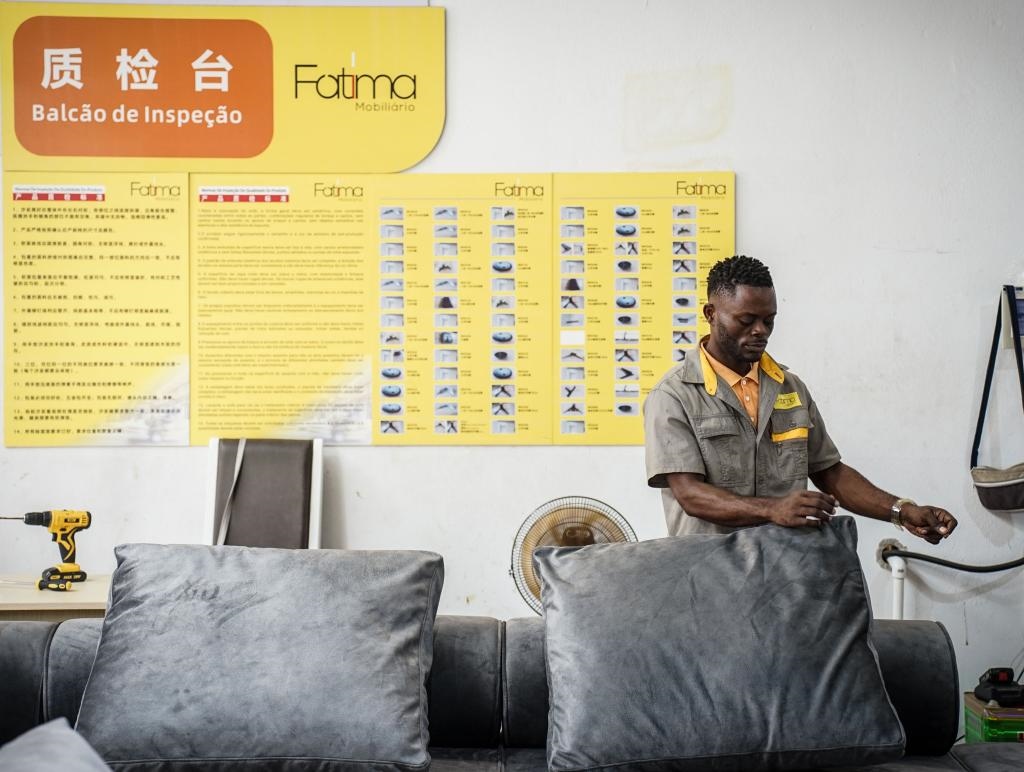 如今,法蒂瑪家具廠的櫥柜、衣柜等產(chǎn)品已占安哥拉國內(nèi)市場四成,沙發(fā)品牌占比也達(dá)四分之一。總經(jīng)理朱炳豐說,家具產(chǎn)業(yè)本地化加快,不僅提升了產(chǎn)品性價比,讓更多老百姓用得起更好的產(chǎn)品,也帶動當(dāng)?shù)毓?yīng)商和加工企業(yè)成長起來。