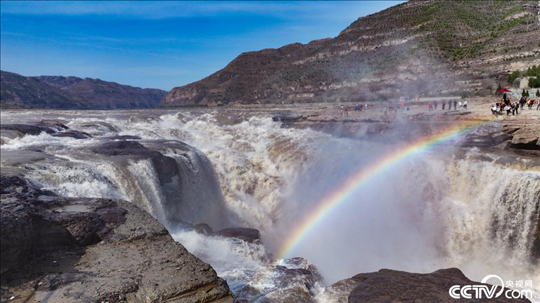 27日,受上游融冰開河影響,黃河宜川段迎來一年一度的“桃花汛”。壺口瀑布水量驟增,激湍翻騰,美不勝收。