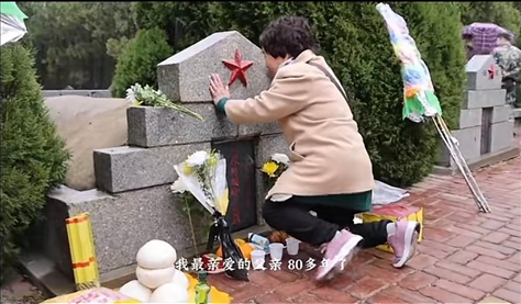 ·81歲的女兒董齊英跨越81年找到烈士父親陳德新,墓碑前泣不成聲。1944年,董齊英在隨父行軍中出生。同年11月,其父陳德新在反“掃蕩”中犧牲。母親為了她的安全,將她送給同村老鄉(xiāng)養(yǎng)育,更名為董齊英。?