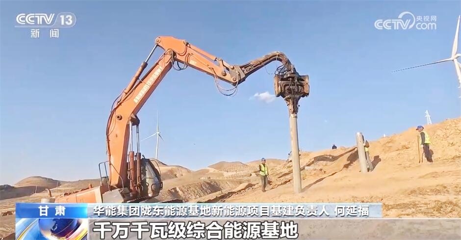 在我國(guó)首個(gè)千萬千瓦級(jí)多能互補(bǔ)綜合能源基地——華能隴東能源基地,施工現(xiàn)場(chǎng)一片繁忙景象。目前,基地已建成投產(chǎn)100萬千瓦容量,在建500萬千瓦容量。
