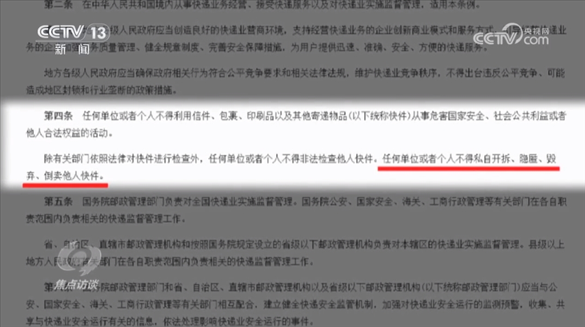 國(guó)務(wù)院頒布的《快遞暫行條例》第四條明確規(guī)定:“任何單位或者個(gè)人不得私自開拆、隱匿、毀棄、倒賣他人快件?!?/p>