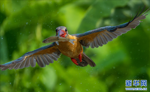 鸛嘴翡翠捕魚瞬間(3月30日攝)。新華網(wǎng)發(fā)(朱邊勇 攝)