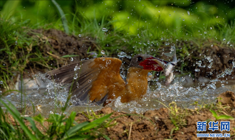 鸛嘴翡翠進食(3月31日攝)。新華網(wǎng)發(fā)(高峰 攝)