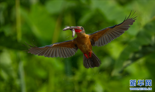 鸛嘴翡翠進食瞬間(3月30日攝)。新華網(wǎng)發(fā)(朱邊勇 攝)