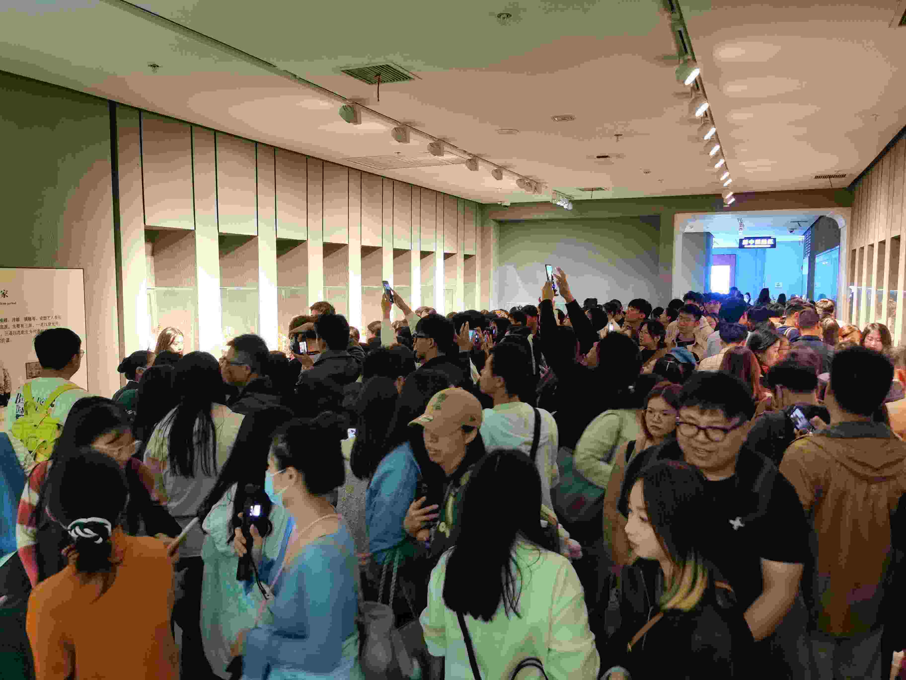 張女士提供的照片顯示,4月5日位于景德鎮(zhèn)的中國(guó)陶瓷博物館人流密集,在網(wǎng)紅展品“無語羅漢”陶瓷雕塑前拍照“打卡”的游客摩肩接踵。