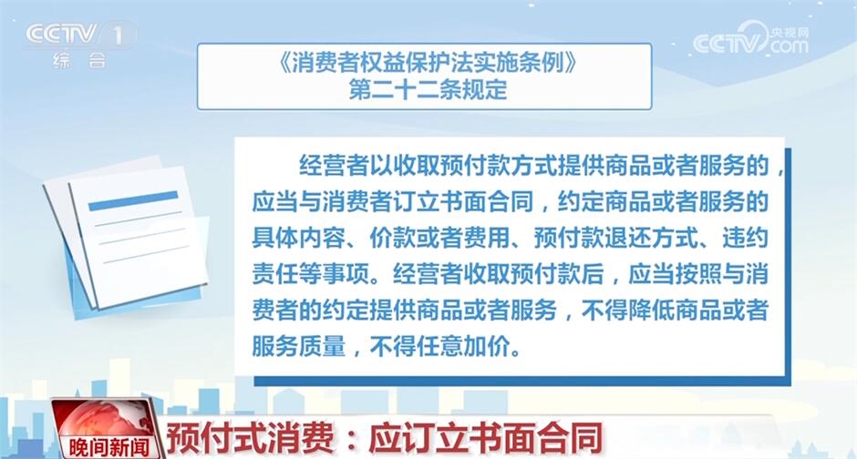 《消費者權益保護法實施條例》第二十二條規(guī)定,經(jīng)營者以收取預付款方式提供商品或者服務的,應當與消費者訂立書面合同,約定商品或者服務的具體內(nèi)容、價款或者費用、預付款退還方式、違約責任等事項。經(jīng)營者收取預付款后,應當按照與消費者的約定,提供商品或者服務,不得降低商品或者服務質量,不得任意加價。