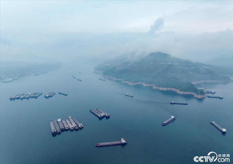 2024年4月10日,湖北宜昌,一場春雨過后,秭歸縣峽江兩岸煙雨朦朧,船行其間,宛如一幅水墨畫卷。