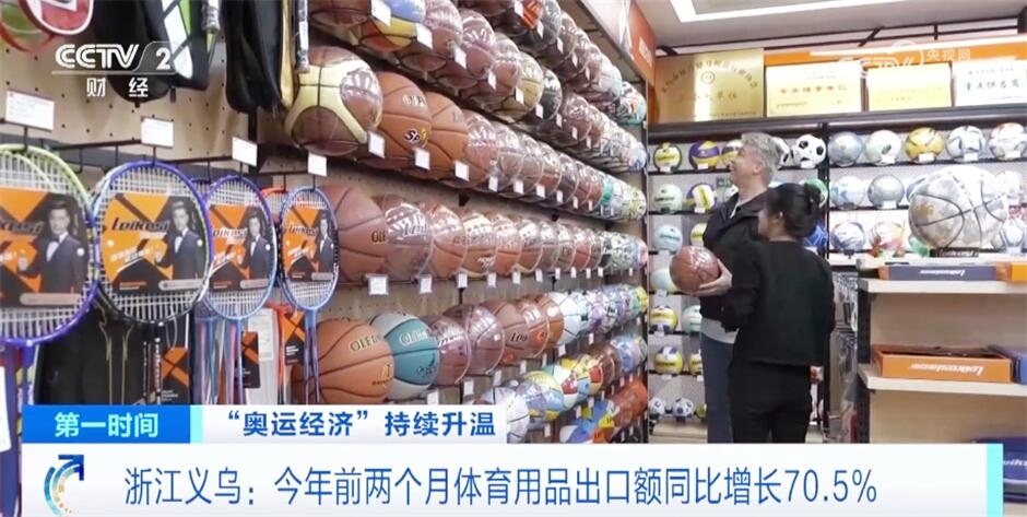 央視網(wǎng)消息:隨著巴黎奧運(yùn)會(huì)的臨近,“奧運(yùn)經(jīng)濟(jì)”也持續(xù)升溫,在浙江義烏國際商貿(mào)城,各種體育用品吸引了不少客商下單。我們來看記者的報(bào)道。