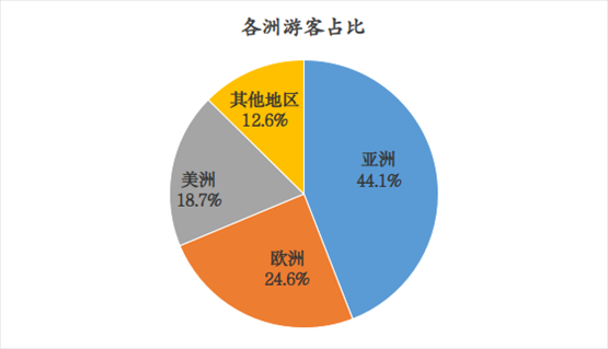一、近程市場恢復(fù)良好。港澳臺地區(qū)游客恢復(fù)速度較快,合計為9.5萬人次,恢復(fù)到2019年的80.1%。游客占比方面,亞洲游客(不包括港澳臺地區(qū))占比為44.1%,較2019年提升7.2個百分點(diǎn),東南亞地區(qū)游客恢復(fù)情況最好,其中主要客源國為馬來西亞、泰國、新加坡。