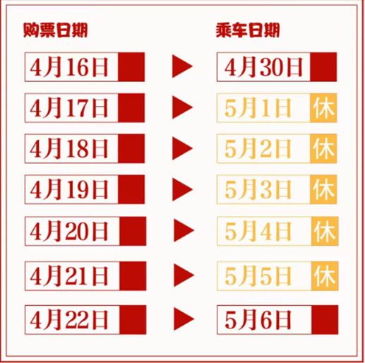 ·“五一”假期火車(chē)票4月17日開(kāi)始發(fā)售。