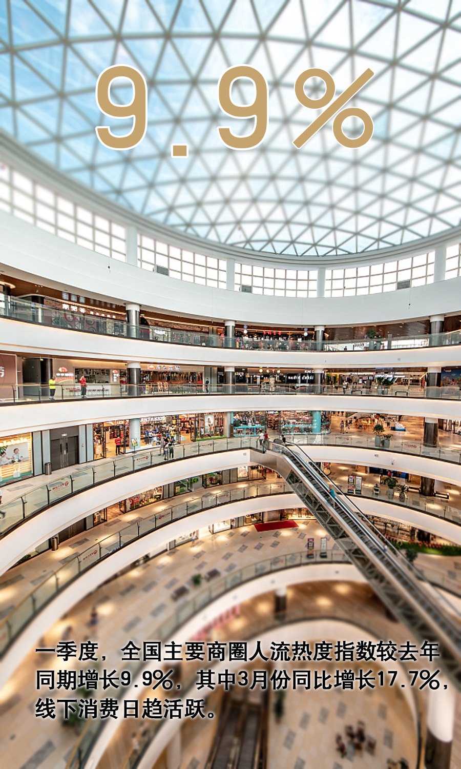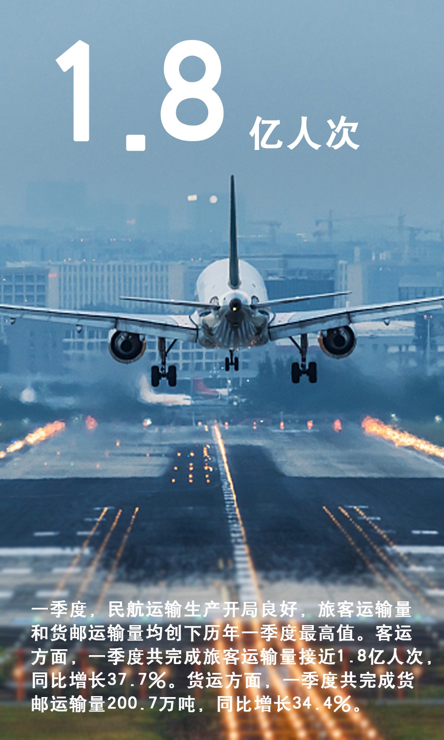 央視網(wǎng)消息:近日,多項(xiàng)一季度經(jīng)濟(jì)數(shù)據(jù)陸續(xù)發(fā)布,讓人眼前一亮。國內(nèi)生產(chǎn)總值達(dá)到296299億元,同比增長5.3%;民航旅客貨郵運(yùn)輸量200.7萬噸,同比增長34.4%;全國鐵路完成固定資產(chǎn)投資超1200億元……一串串向上躍動的數(shù)字顯示生產(chǎn)活力、外貿(mào)活力、消費(fèi)活力不斷迸發(fā),多領(lǐng)域跑出高質(zhì)量發(fā)展“加速度”,一季度中國經(jīng)濟(jì)良好開局為全年打下堅(jiān)實(shí)基礎(chǔ)。