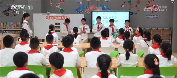 在江西南昌、河北保定,小學生們踴躍分享讀書心得。大家還走出教室,來到林蔭下、池塘邊,沉浸式誦讀經(jīng)典古詩詞。