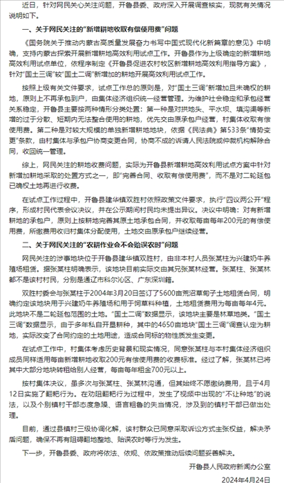 ·新增耕地收取有償使用費(fèi)?農(nóng)耕作業(yè)會(huì)不會(huì)貽誤農(nóng)時(shí)??jī)?nèi)蒙古開(kāi)魯縣回應(yīng)。