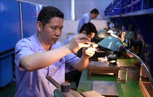 20式槍族是我國自主研制的新一代輕武器譜系,子彈在空中幾百米的運(yùn)行誤差,與槍管中1微米的變形息息相關(guān)。中國兵器建設(shè)工業(yè)鉗工張偉所加工的部件,是20式槍族的槍管所專用的測量工具,他苦練34年為20式槍族“立規(guī)矩”,他加工的每一件量具公差都控制在1微米以內(nèi)。
