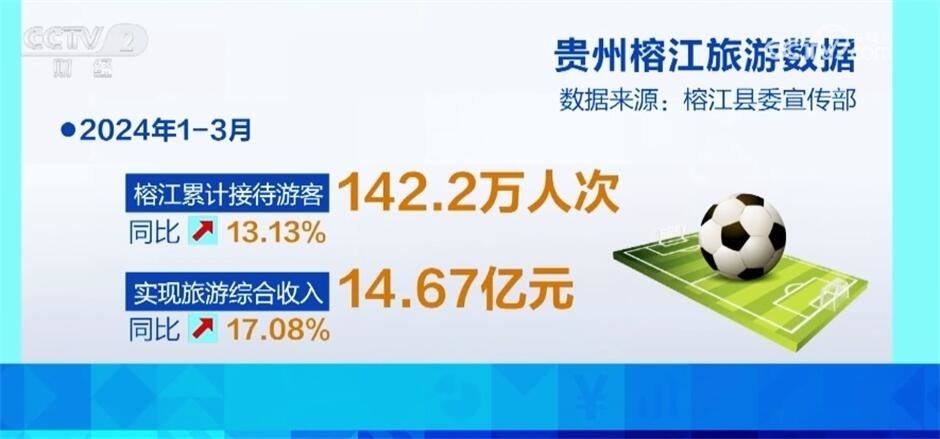 在“村超”流量的帶動(dòng)下,2024年1—3月榕江累計(jì)接待游客142.2萬人次,同比增長13.13%,實(shí)現(xiàn)旅游綜合收入14.67億元,同比增長17.08%。