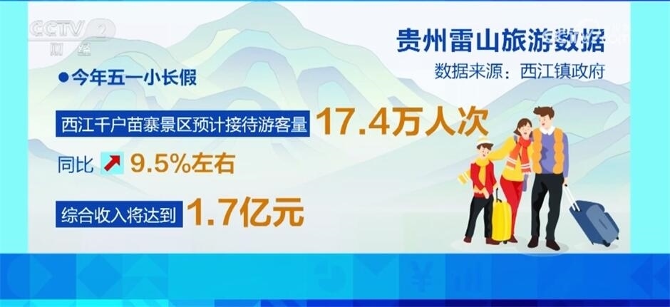 今年“五一”小長假,西江千戶苗寨景區(qū)預(yù)計(jì)接待游客量達(dá)17.4萬人次,同比增長9.5%左右,綜合收入將達(dá)到1.7億元。依托旅拍行業(yè),一條集美妝、跟拍、服裝租賃、首飾定制等于一體的產(chǎn)業(yè)鏈正在加速生成,文旅發(fā)展還帶動(dòng)了西江千戶苗寨及雷山縣周邊村寨兩萬多人就業(yè)。