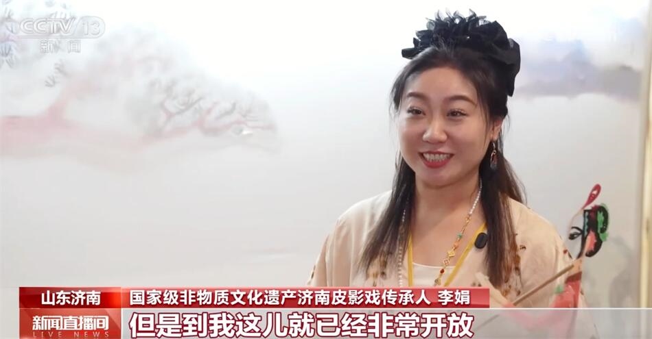 國家級非物質文化遺產(chǎn)濟南皮影戲傳承人李娟稱:“濟南皮影世世代代傳承,傳到我這兒是五代了,過去叫傳男不傳女,但是到我這兒就已經(jīng)非常開放,女孩也可以學皮影。我就想實現(xiàn)我的夢想,讓更多的女孩子有機會接觸到皮影,在濟南這么美麗的百花洲,我們就在這里成立了一個皮影女團,有很多年輕的女孩通過學習皮影,甚至看演出的時候她只是一個觀眾,她發(fā)現(xiàn)皮影非常有意思,就非常希望能夠加入到我們團隊里來,幫著我們一起去傳承發(fā)展皮影。”