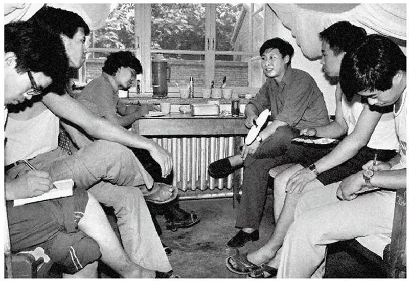 1984年7月29日,習(xí)近平與中國人民大學(xué)暑期社會實(shí)踐團(tuán)成員在正定縣政府招待所宿舍座談。