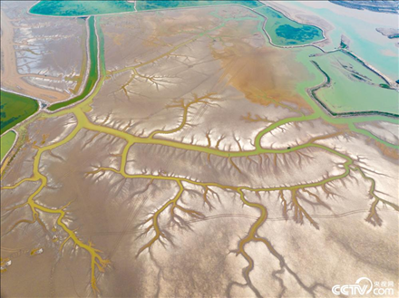 2024年5月7日,江蘇鹽城黃海濕地出現(xiàn)“潮汐樹” 景觀。