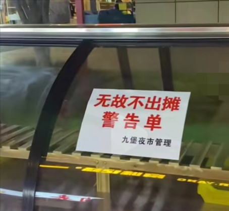 ·杭州一夜市給攤主開無故不出攤警告單,管理方:不能三天打魚兩天曬網(wǎng)。