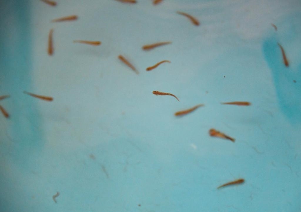 這是5月5日在四川省崇州市雞冠山冷水魚科研基地拍攝的川陜哲羅鮭子二代仔魚。新華社記者 王曦 攝