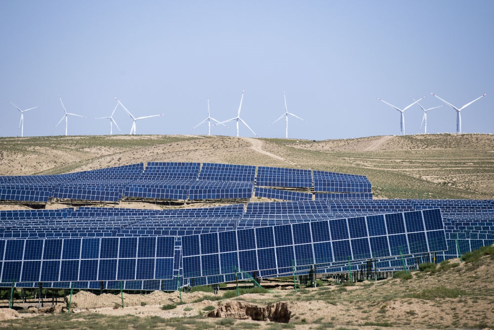 寧夏靈武,國能寧東200萬千瓦復(fù)合光伏基地,370多萬塊光伏板沿著廣袤荒灘起伏,在午后驕陽下泛起“粼粼波光”,不斷向浙江等地輸送綠電。
