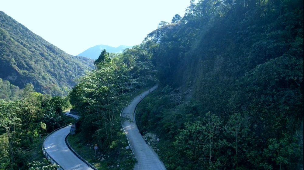 茶場道路順著山谷延伸,像一條絲帶纏繞在翠綠的山上,與國道559線扎墨段(即