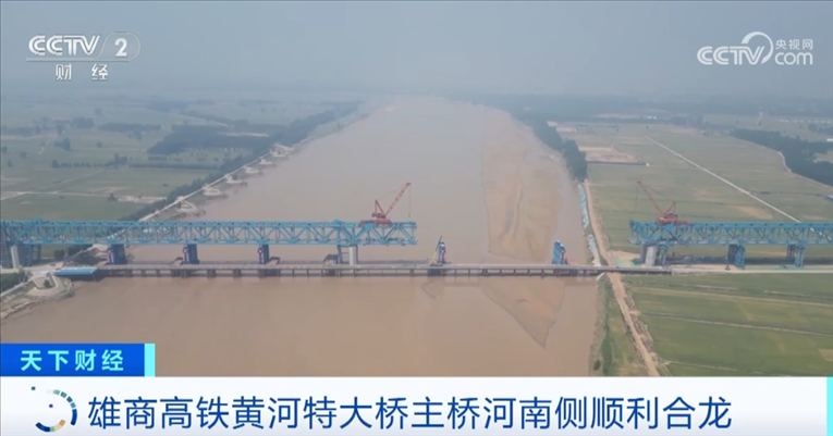 央視網(wǎng)消息:雄商高鐵是京雄商高鐵的一段,連接河北省雄安新區(qū)和河南商丘。5月18日,雄商高鐵黃河特大橋河南側(cè)的鋼桁梁架設(shè)施工全部完成,這標(biāo)志著主橋河南側(cè)已經(jīng)順利合龍。截至目前,全橋鋼桁梁架設(shè)的進(jìn)度超過(guò)了87%,預(yù)計(jì)主橋全橋7月份合龍。