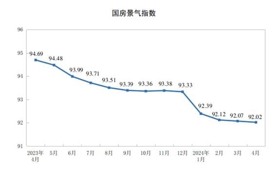 4月份,房地產(chǎn)開(kāi)發(fā)景氣指數(shù)(簡(jiǎn)稱“國(guó)房景氣指數(shù)”)為92.02。