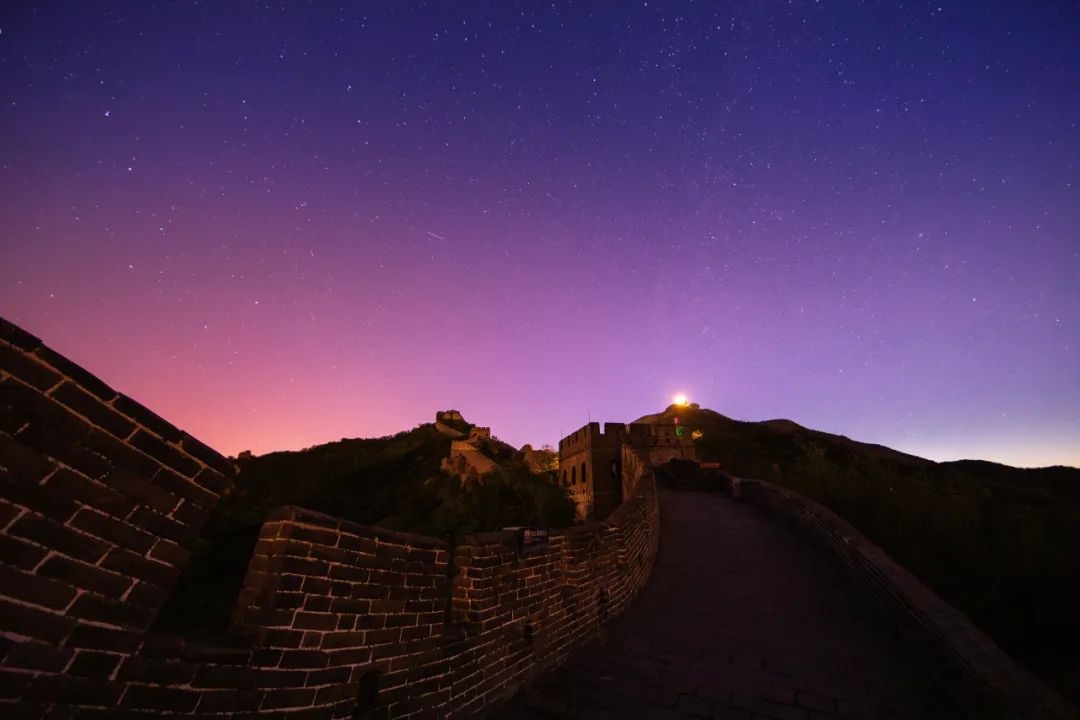 這條巨龍就是北京八達(dá)嶺長城。夜色下的八達(dá)嶺長城有著和白天不一樣的美,她更深邃、更安靜,仿佛無聲講述著千百年來的歷史賡續(xù)。