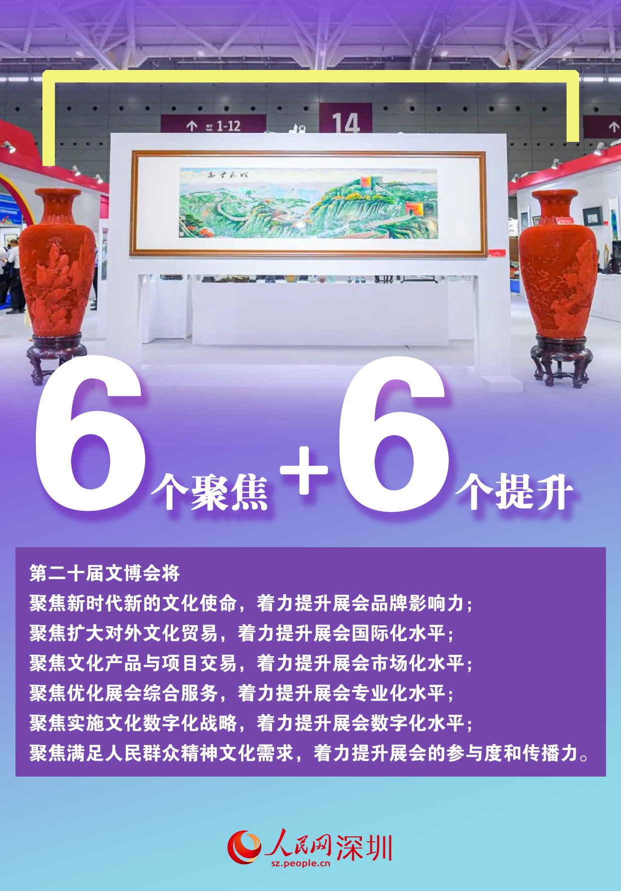 5月23日至27日,第二十屆中國(深圳)國際文化產(chǎn)業(yè)博覽交易會將在深圳國際會展中心舉辦。本屆文博會將進一步擴大展會規(guī)模,優(yōu)化展會結(jié)構,強化交易功能,提升服務質(zhì)量,努力打造國際文化產(chǎn)業(yè)頭部展和最具影響力的文化產(chǎn)品貿(mào)易平臺,為推動文化繁榮、建設文化強國、建設中華民族現(xiàn)代文明作出新貢獻。