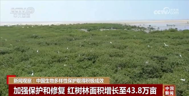 生態(tài)環(huán)境部公布的資料顯示,中國實施生態(tài)保護紅線制度,陸域生態(tài)保護紅線面積占陸域國土面積的比例超30%,有效保護了90%的陸地生態(tài)系統(tǒng)類型和74%的國家重點保護野生動植物種群;構(gòu)建以國家公園為主體的自然保護地體系,設(shè)立三江源等第一批5個國家公園,遴選出49個國家公園候選區(qū),建成首個國家植物園;實施52個山水林田湖草沙一體化保護和修復(fù)工程,累計完成修復(fù)治理面積超1億畝;推進典型海洋生態(tài)系統(tǒng)保護修復(fù)工程,紅樹林面積增長至43.8萬畝,成為世界上少數(shù)幾個紅樹林面積凈增加的國家之一。