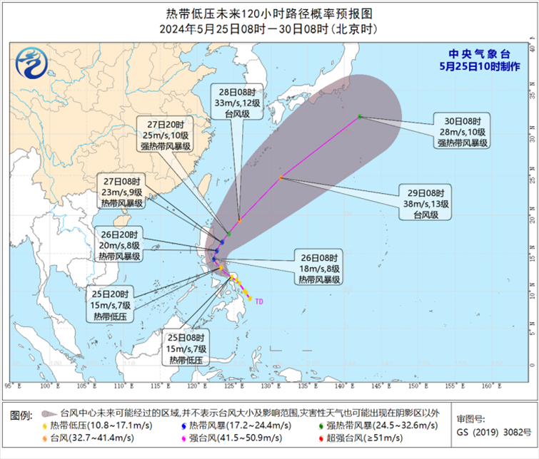 預(yù)計(jì),低壓中心將以每小時(shí)15至20公里的速度向西北方向移動(dòng),強(qiáng)度緩慢增強(qiáng),將于未來(lái)24小時(shí)內(nèi)加強(qiáng)為今年第1號(hào)臺(tái)風(fēng),26至27日將在菲律賓呂宋島東部海面逐漸轉(zhuǎn)向東北方向移動(dòng)。