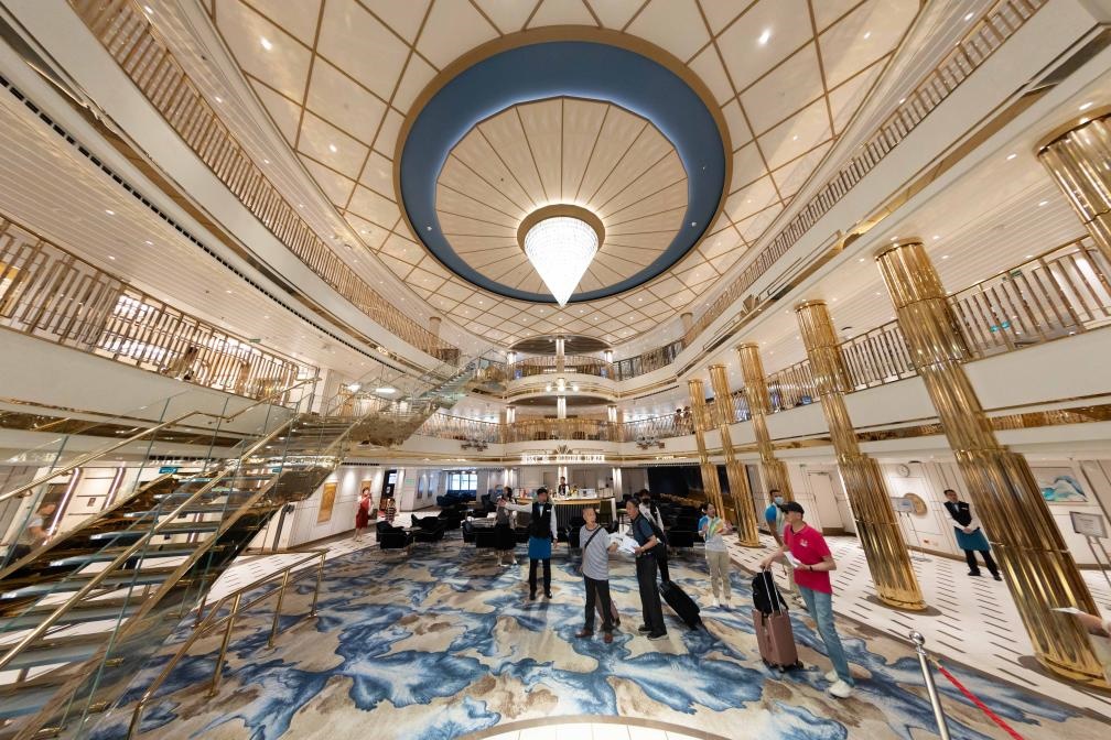 5月26日拍攝的國產(chǎn)大型郵輪“愛達(dá)·魔都號”愛達(dá)廣場。新華社記者 王翔 攝