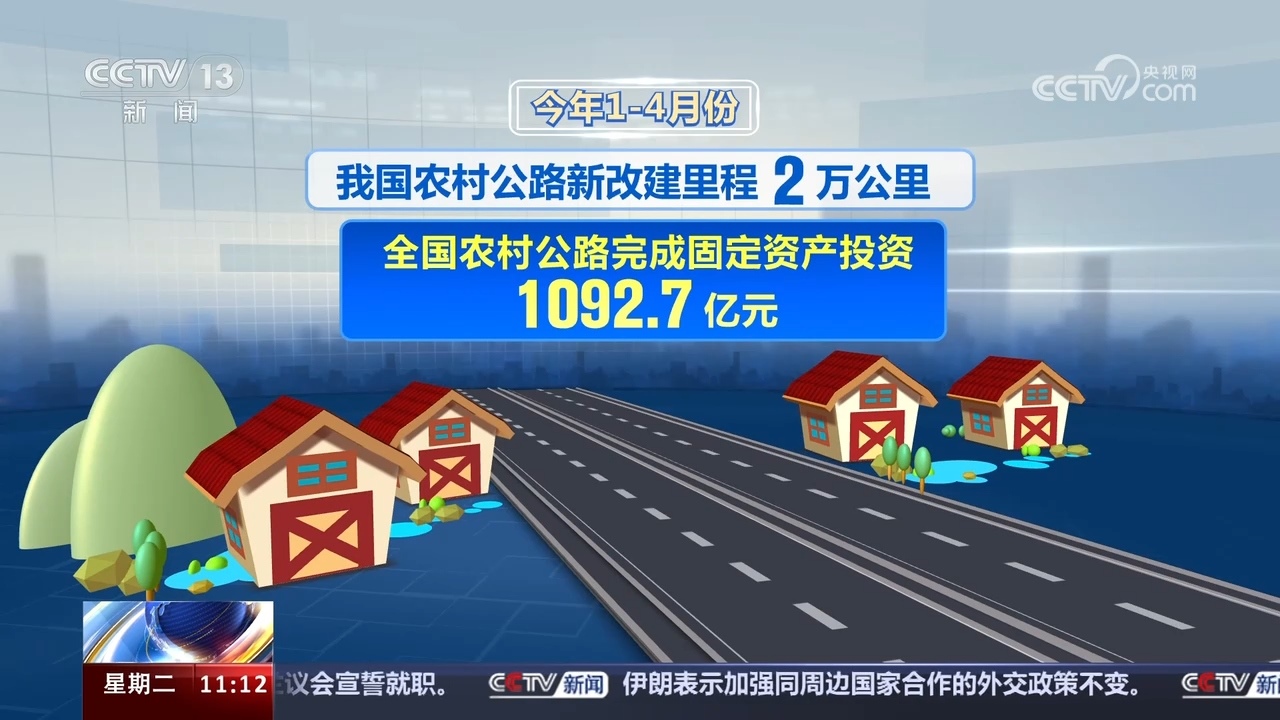 今年1—4月份,我國農村公路新改建里程2萬公里,全國農村公路完成固定資產投資1092.7億元。