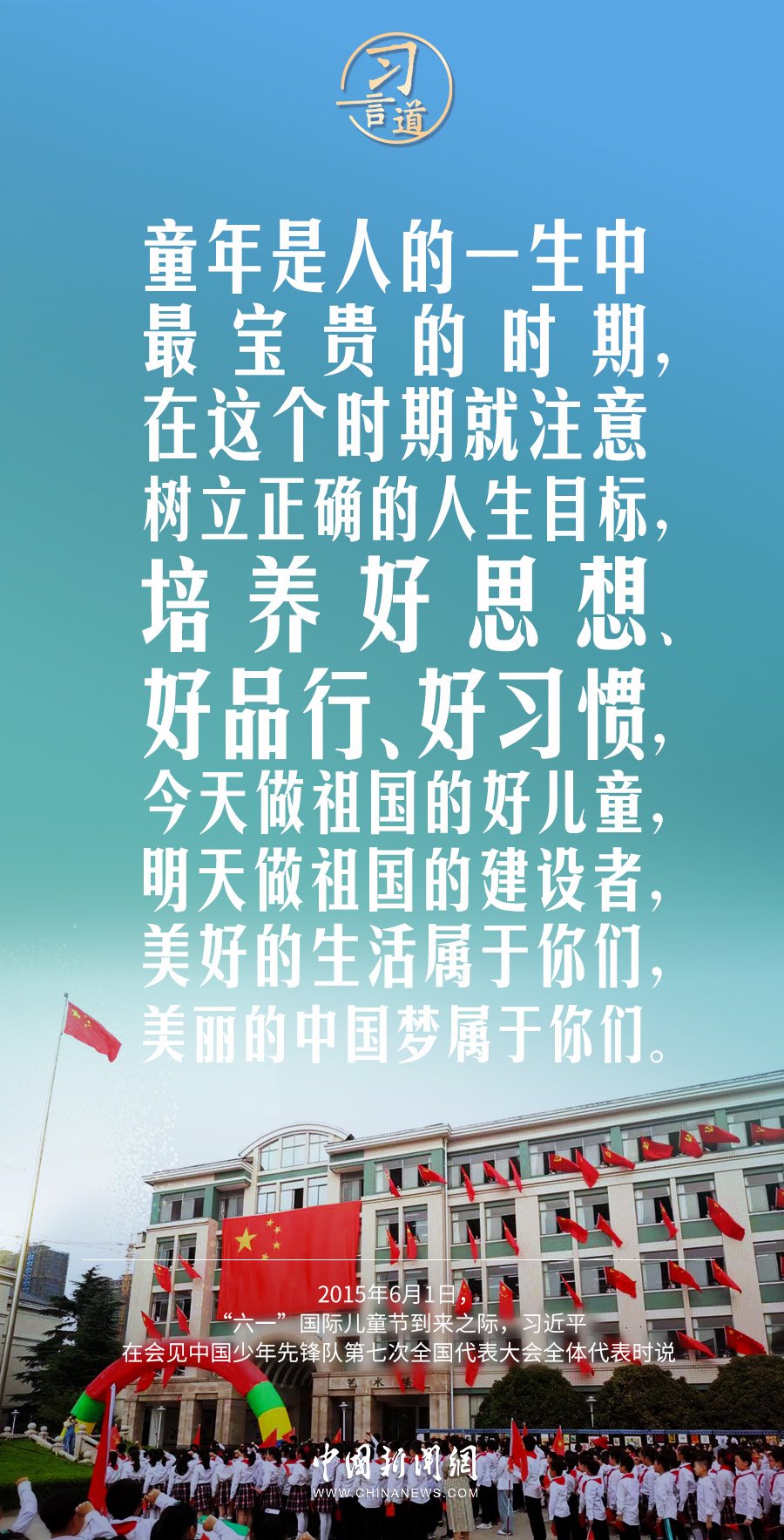 今天是“六一”國際兒童節(jié),習(xí)近平總書記曾在多個場合表達(dá)對少年兒童的關(guān)懷和期望,希望少年兒童從小立志向、有夢想。
