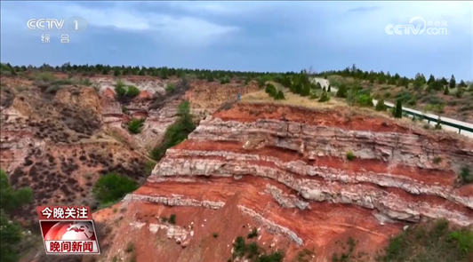 總臺(tái)記者 楊永青:我現(xiàn)在是在內(nèi)蒙古鄂爾多斯市準(zhǔn)格爾旗的暖水鄉(xiāng),這里也是黃河幾字灣的南部,而我腳下就是砒砂巖的核心區(qū),大家現(xiàn)在看到我腳下這些紅一道白一道像五花肉一樣的景觀是不是覺得很壯觀,但它卻被稱為地球生態(tài)癌癥。因?yàn)樗屈S河輸沙的主要元兇之一。